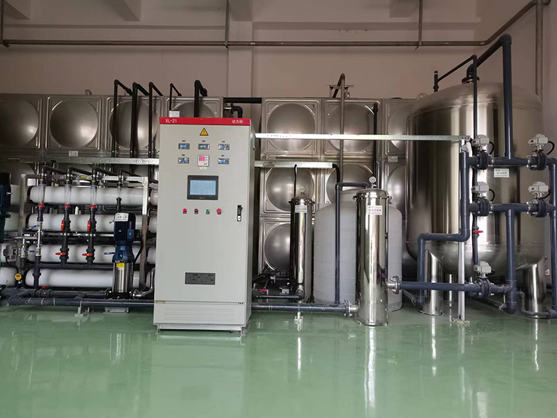 工艺流程:原水→原水箱→原水泵→机械过滤器→活性炭过滤器→阻垢/软化→保安过滤器→高压泵→反渗透→纯水箱→输送泵→用水点